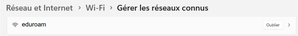 Sous windows avant de lancer la configuration il est préférable de supprimer l’ancienne : configuration>Réseau>Wifi>Gérer les réseaux connus et cliquer oublier :
