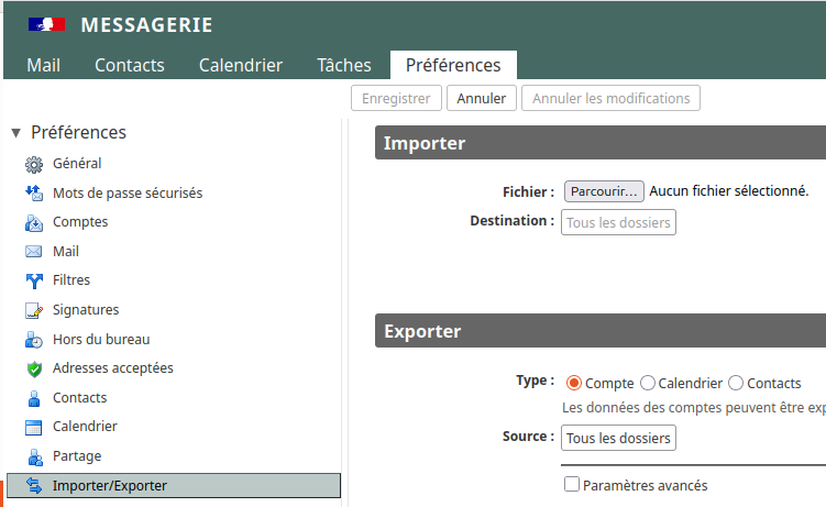- Dans l’onglet "Préférences", cliquer sur Importer/Exporter puis "Import"
