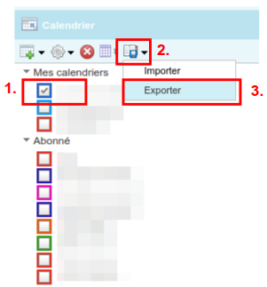 - Selectionner le calendrier à exporter (1.)