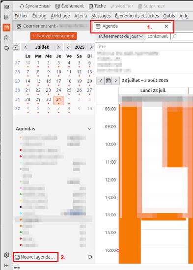 - Ouvrir l’agenda (1.) et cliquer sur Nouvel agenda ... (2.)